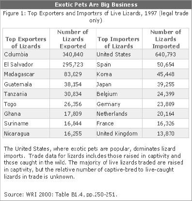 Bosc Monitor LizardAlthough the animals in pet shops don’t generally tend to be endangered, the species in the wild could well be on the brink of the “endangered” label. Pets such as lizards, parrots, and many other species find their way to pet shops all over the world so they can be bought for our entertainment. Although there is nothing directly wrong with this, indirectly, many species are being hunted at unsustainable levels.