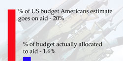 Americans aren’t aware of this. A poll asked people to guess what percentage of the annual budget was set aside for aid, and they guessed it was around 20%. The truth is nearer 1.6%. And that’s the budget. Put that into the overall income, and you’ve got the 0.18% figure quoted above.