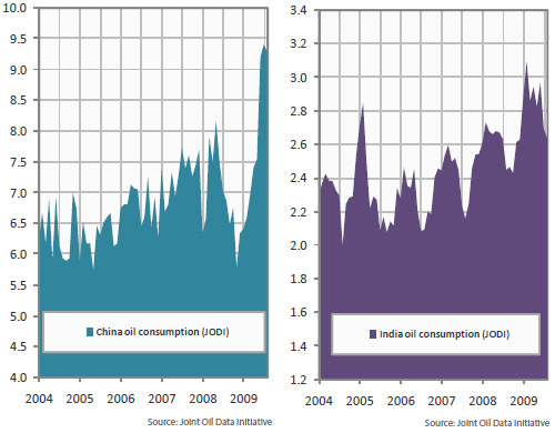Since the government is taking responsibility for the provision of oil, it also gets to set the price that it sells for. The Chinese and Indian economies both run with lower deficits than ours in the west, which means they can afford subsidize oil to their citizens. Chinese and Indian consumers do not pay the market rate for their fuel, and are protected from the crazy fluctuations in price.