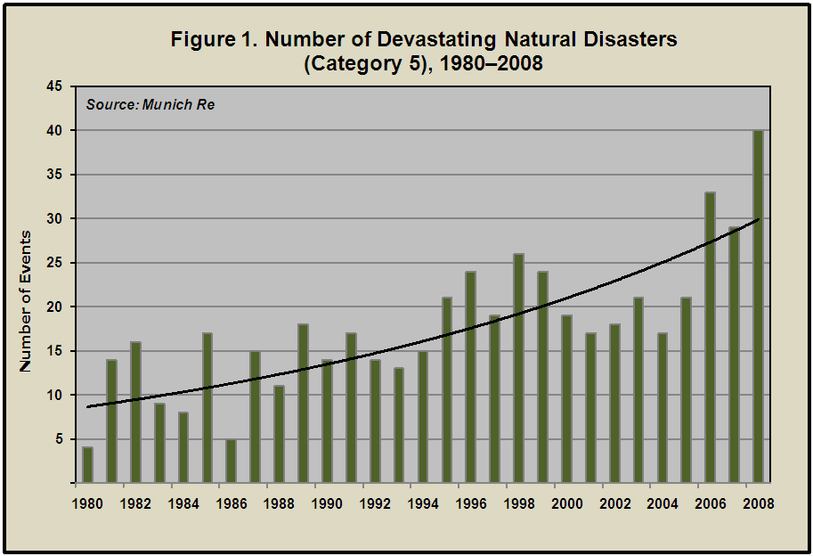 It’s also notable that the severity of weather events is increasing. If you just look at the number of category five storms in the last thirty years, there is a marked increase.
