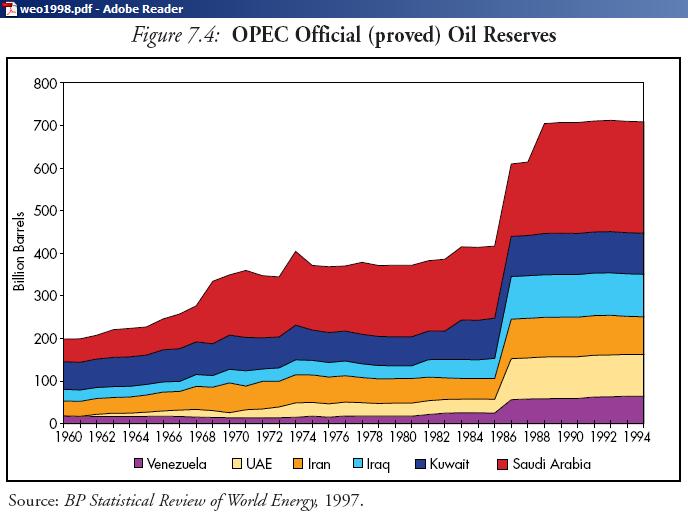 The questions raised about mideast reserves have some merit. No one really knows if they are reporting accurate figures for their reserves. Most likely not when they can control prices with a turn of a valve.