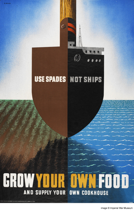 Wandering through the exhibition, I was grateful that I didn’t have to live through it, that I was born in such easy times. But I was also aware of how relevant it all is, how necessary these kinds of measures could become again. Although it may lack the urgency of war, we will need a similar drive to greater sufficiency. Asparagus from Peru and lamb from New Zealand will no longer be possible, and farming will become a valued career choice once again. The ‘use spades not ships’ poster here is just as pertinent today as it was in 1939 – not because the ships are being torpedoes, but because of the CO2 emissions of shipping, and the rising cost of oil.
