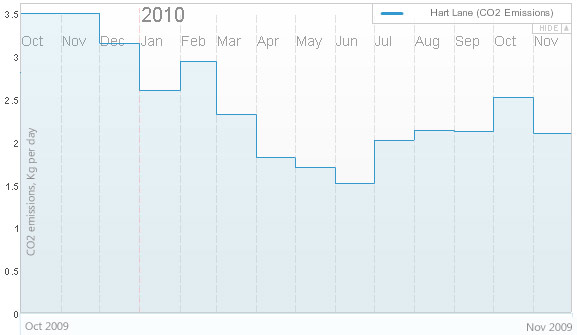 During the challenge I started logging our energy use on a weekly basis on imeasure, and I went back and entered all our meter readings from bills. As of October that gives me a year’s worth of data, and I can see that our carbon emissions from gas and electricity are running about 30-40% lower than they were last winter.