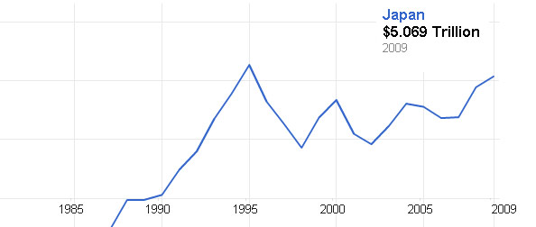 Or do we? Perhaps the world already has a post-growth society, albeit an unintentional one.  Here’s what Japan’s GDP has been up to for the last twenty years:
