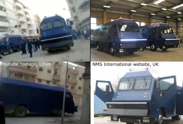 Perhaps Downing Street doesn’t have any evidence, but Amnesty International does. That’s an armoured car made by NMS International (Their website appears to have been locked, but here’s the homepage cache) They’re based near Coventry. Here’s a Youtube video of how their vehicle might be used.
