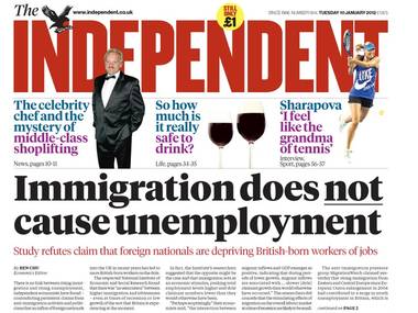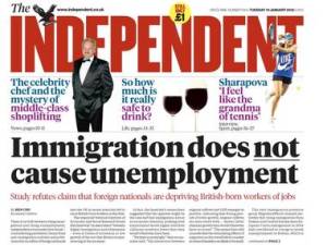 It’s been a bizarre week for immigration headlines. ‘Immigration does not cause unemployment‘ declared the Independent on the front page. ‘Immigrants are not causing unemployment‘ said the Telegraph, and the Guardian announced that ‘Migrants do not affect jobless levels‘.