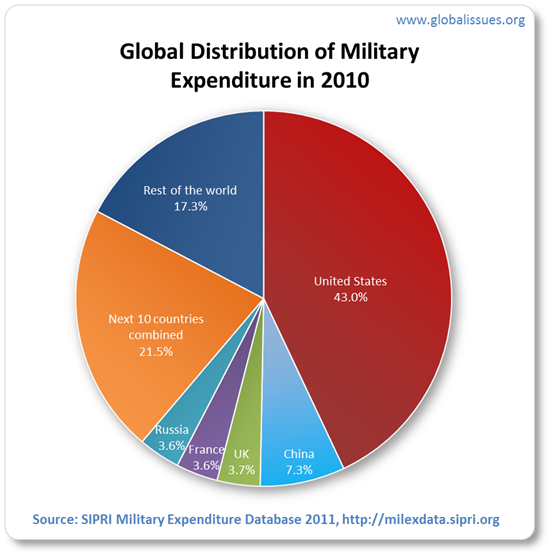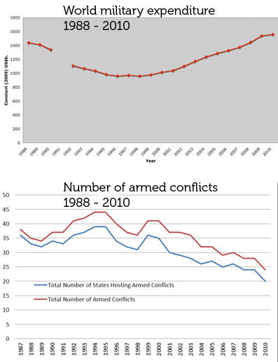 First, let’s put those questions in perspective and see why they are worth asking. In 2010, the world spent 2.6% of its GDP on the military – and you could do a lot with that. According to the Stern Report, preventing climate change would cost 1% of global GDP. The Millennium Development Goals are based on using 0.7% of the developed countries’ income. So you could end poverty and halt climate change and still have plenty left over.
