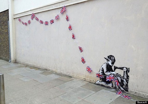 I walked past a Poundland store this morning, and they have a whole 99p range of Jubilee souvenirs, and that reminded me of the artwork that appeared on the side of a Poundland this week: