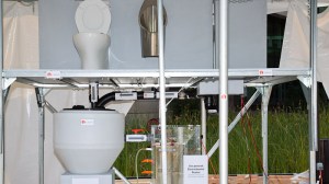 It’s a great idea, and last week the winners were announced. Here’s the winning idea from the California Institute of Technology. As you can see from the picture on the right, the toilet itself is perched above that big white cistern, which is actually a solar-powered electro-chemical reactor. It breaks down water and waste to create hydrogen, which can then be stored in hydrogen fuel cells and …