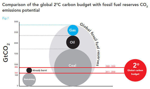• If we are to prevent serious climate change, we cannot use all those reserves. To keep below 2 degrees of warming, we can really only burn a fifth of them.