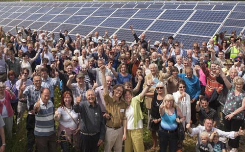 On an old airfield outside Didcot stand 5 large wind turbines, each generating 1.3 MW. You wouldn’t know it driving past, but they each have names chosen by local schoolchildren. The £5.5 million cost of the community wind farm was raised by 2,374 local shareholders and it runs as a cooperative, yielding a return on investment of 8%. Despite being situated next to the mighty cooling towers of Didcot power station, the project was still vigorously opposed on aesthetic grounds by anti-wind campaigners.