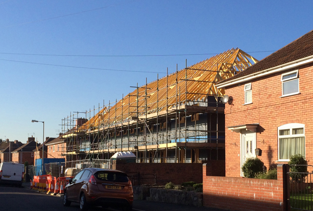 The current development is in Bristol, and consists of seven new homes in a block. To match the other houses on the street, and as a condition of planning permission, they will be clad in brick. Inside, they’ll be made from pre-fabricated wood and straw panels made by a company called Modcell.