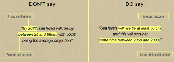 As an example of how our presentation of a fact can change how people understand it, here are two ways of making a point about potential sea rises: