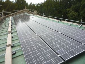 They started by reducing their energy use, turning off floodlights that illuminated the church at night. Pretty this may be, but it’s very wasteful. At the very least they could be on a timer and turned off in the middle of the night. More efficient lighting was also added inside the church.