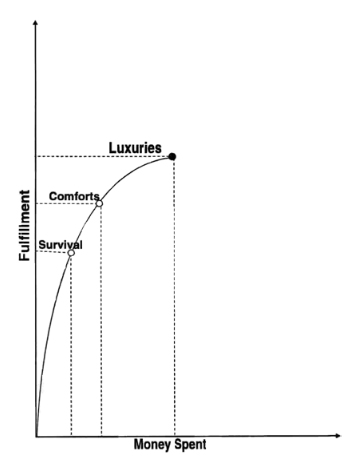 In their bestselling book Your Money or Your Life, Vicki Robin and Joe Dominguez suggest that the benefits of spending can be plotted on a curve.
