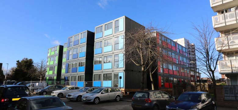 One company that is active in Britain is QED, who create moveable housing developments on demand, bringing spare urban land into use quickly. Their pop-up buildings are based on shipping containers, and they can be stacked to provide retail, workshops, or even multi-storey housing units. There are several of these around, including one in Lewisham in London, or this one in Acton. Hope Gardens has 60 apartments in moveable containers. The whole building is made of modular units that can be dismantled and endlessly reused.