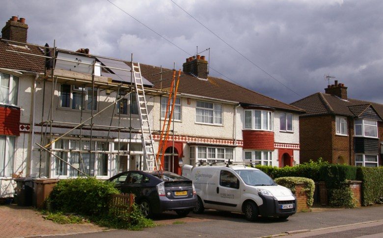 This was the view from the street this week as we finally got solar panels installed on our house, the next step in wrestling our 1920s terrace into the 21st century.
