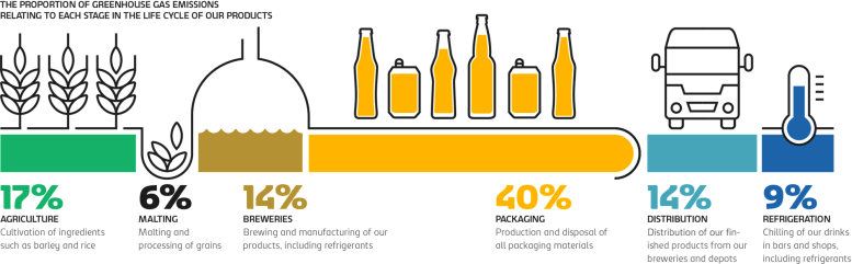 Zero carbon footprint – aiming for zero carbon emissions at their breweries by 2030, the company have adopted a science-based goal that is consistent with 1.5 degrees of warming. That includes a target of 100% renewable energy, expanding from the current 46%. But of course the brewery itself is only part of the journey, and reducing emissions all the way along the chain is a bigger challenge. Carlsberg are aiming for a 30% reduction in what they call ‘beer in hand’ emissions by 2030. Looking at the current emissions profile shows where savings could be made, with packaging and disposal an obvious place to start. That could be bottles returned and reused, which already happens in many places. Several packaging innovations were launched last week. Among them are packs of tins that are held together with glue instead of a plastic holder.