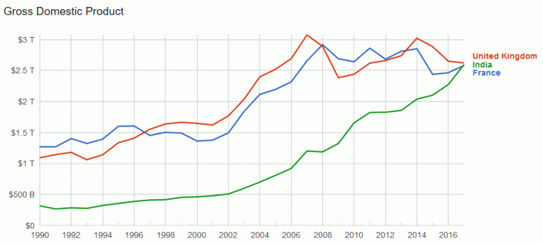 We aren’t talking about it much because the figures aren’t in, but 2018 is likely to be the year that India’s GDP overtakes Britain’s. We regularly trade places with France and I couldn’t say what order they’ll come in, but Britain is no longer in the top five global economies.
