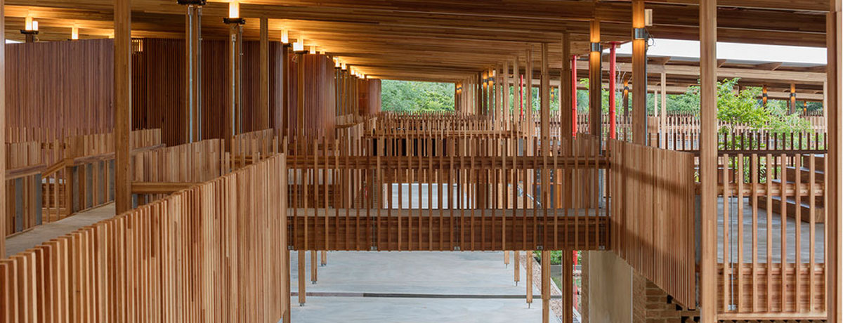 It’s a very sustainable building, made of wood and mud drawn from the site. The planted courtyards draw air through the building, keeping it naturally cooled and ventilated in its tropical setting. It’s a culturally sensitive building, combining modern techniques with local traditions. Though they don’t use the word specifically, it demonstrates lots of principles of biophilic design in its sight-lines and the way it connects indoors and outdoors.