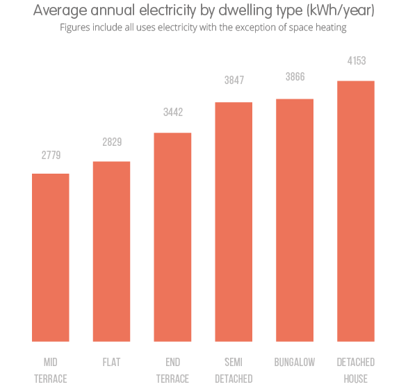 That’s partly because we’ve done the basics to keep our energy use down. Back in 2010 my wife and I took on the challenge of reducing our emissions by 10% over the course of the year, and cut 30-40% off our energy use. Before we congratulate ourselves too much though, a big reason why our bills are lower is that we’re a mid-terrace house and we’re insulated very well on two sides by our neighbours. Mid-terrace houses use less energy than any other category of home: