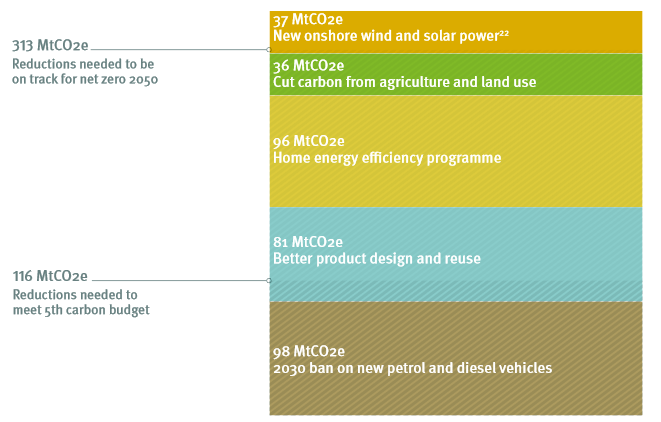 The graphic below shows how the potential carbon savings from these five measures add up to our intermediate climate targets and the goal of net zero by 2050.