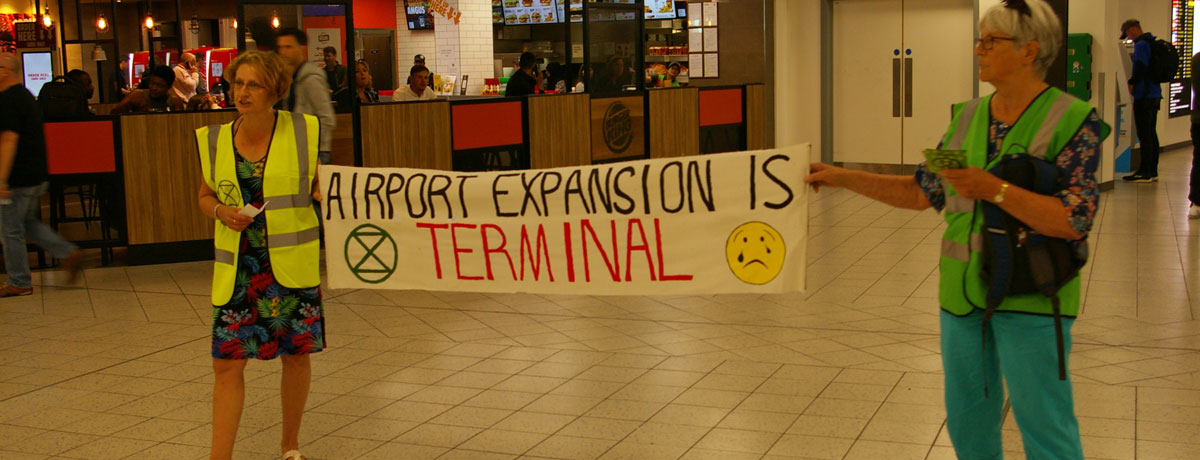 What avenue is there but protest? And by the way – the airport has a whole host of byelaws to prevent protest, including the simple unveiling of a banner. So no, you can’t protest either. Not legally, and that is down to twenty years or more of protests at and around the airport, long before Extinction Rebellion got started.