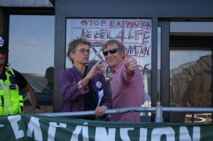 Then, while the security staff were distracted, three activists glued themselves to the doors of the operator’s office – an action deliberately targeting the operator, rather than passengers. Coming back from their lunch break, the airport staff who are planning and working towards expansion could hardly fail to get the message.