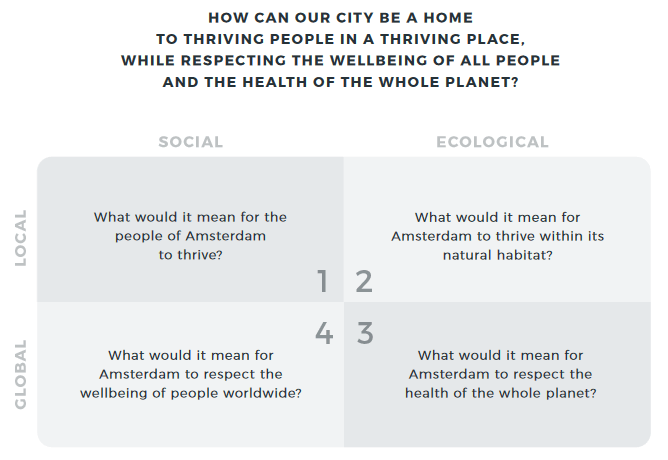 The Amsterdam Doughnut report is available online, and it uses four ‘lenses’ to help ask good questions and guide discussion about directions for the city.