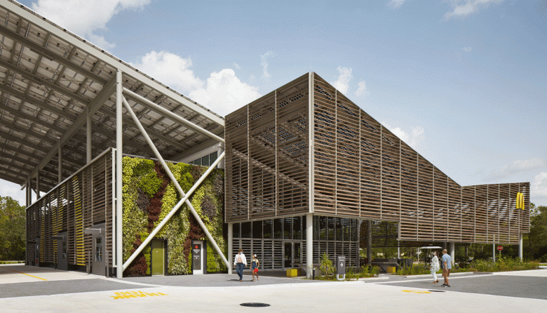Of course, while it continues to serve round slabs of cheap beef as its main product line, McDonalds is never going to come anywhere near sustainability. But one step at a time. It will need to address the energy footprint of it outlets as well as the footprint of its menu, and calling this building a flagship is a clear statement of intent.
