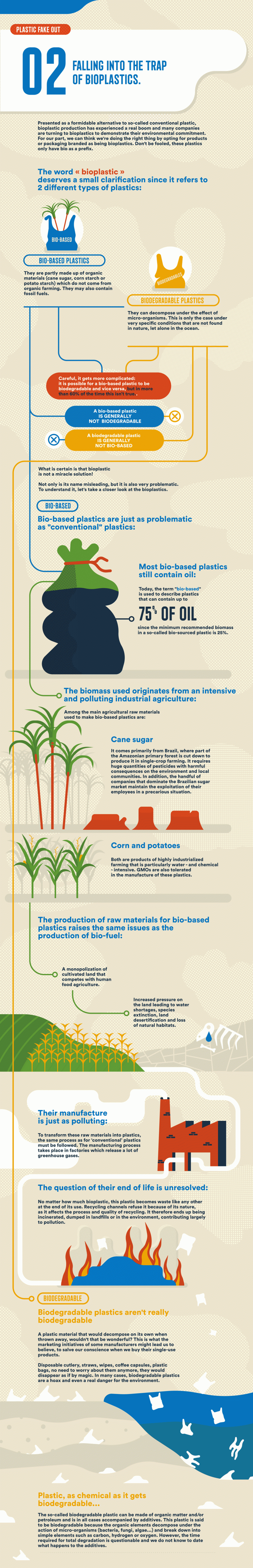A couple of weeks ago I posted an infographic from Surfrider Foundation Europe, all about plastic pollution and how recycling is only a limited solution. It got a good response, and so here is the second in their series. This time the subject is bioplastics, a slippery idea that also has very real limits to its usefulness.