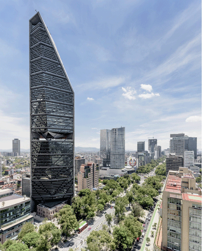 At 21 million citizens, Mexico City is one of the largest, and it’s little surprise that it has been growing upwards. Torre Reforma is one of several striking new skyscrapers in the region that are breaking new ground in design and sustainability.