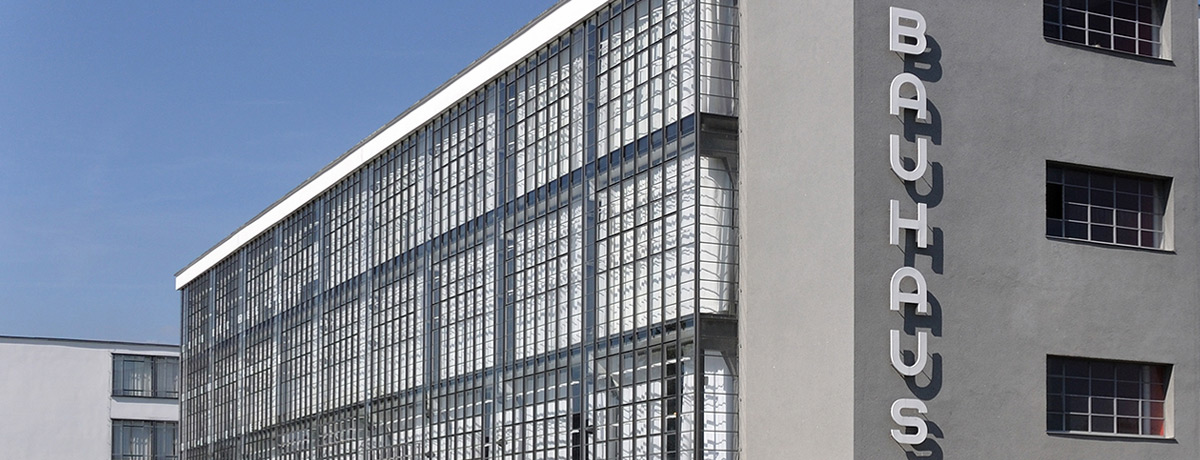 The Bauhaus school was founded in 1919 in Germany. It was influential enough to be able to command a purpose-built campus a few years later, planned by Walter Gropius. The campus included accomodation blocks, teaching spaces and offices, all demonstrating their signature unfussy and practical design aesthetic.