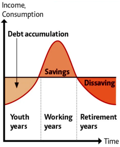 As we get older, Modigliani argued, income increases and we begin to pay down those debts. We salt away some savings, and start to build a stock of wealth.