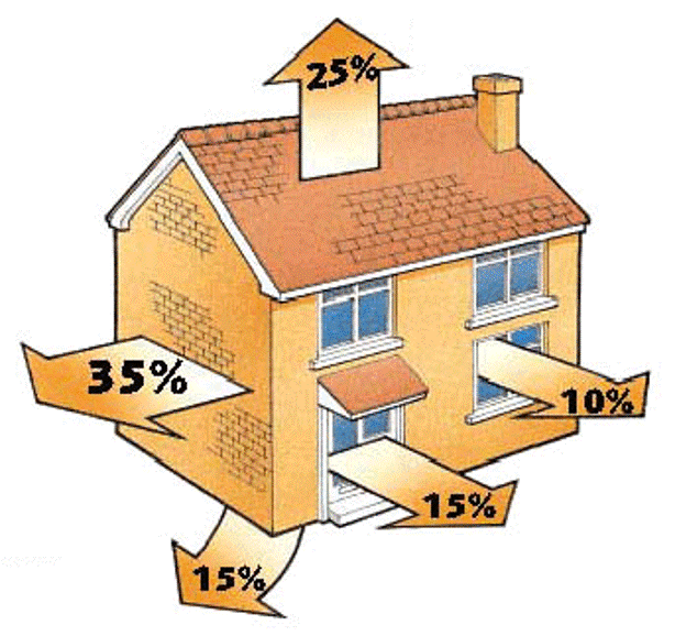 Here’s an image of how homes lose heat, so you know where to focus. Hopefully you’ve done the loft already, but you can put down another layer of insulation. The recommended depth has gone up, so if you insulated your loft years ago you might want to top it up.