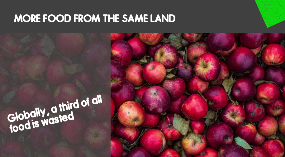 One really good place to start is with food waste. Globally, a third of all food is wasted. 1.3 billion tonnes of food is thrown away every year. That’s food that could be feeding people or animals, and so it’s an obvious and practical solution. We’d also save money and reduce greenhouse gases from waste, so everybody wins.