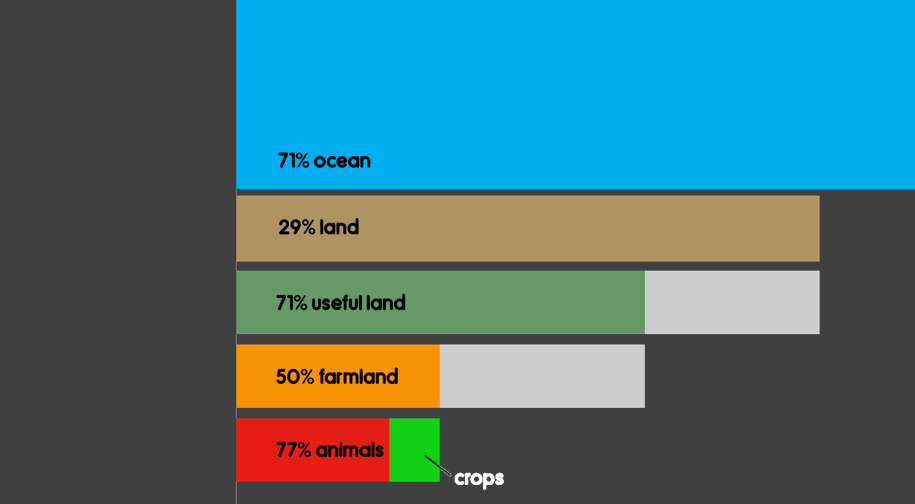 Looking back at this graphic from yesterday, here’s another thing we can do to get more food from the same land. We can rebalance the amount of land given over to animals and growing food for animals, and grow more food for people directly.