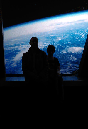 Finally, visitors step into the spaceship’s ‘viewing gallery’, where we can see the earth turning beneath us. I found this a poignant and reflective space, despite the big childish buttons.