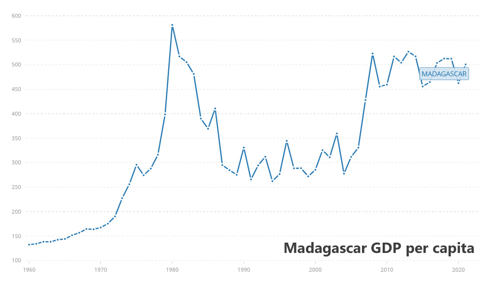 The year I was born, GDP per capita in Madagascar stood at $517, making it one of the worlds poorest countries. Forty years later in 2021, the World Bank records GDP per capita at $501. So little has changed for so many Malagasy people. By some measures progress has gone backwards. And yet, “we have everything here,” says a former senator interviewed in the book. “Food, water, minerals, mountains, beaches. It’s a beautiful country and there is no reason why we should be so poor.”