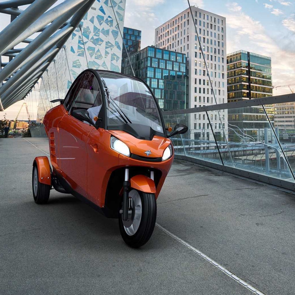 The Carver Electric leans into corners like a bike and isn’t much wider. It aims to combine the safety of a car with the manoeuvrability of a motorbike, slicing through the traffic to get commuters to work effortlessly.