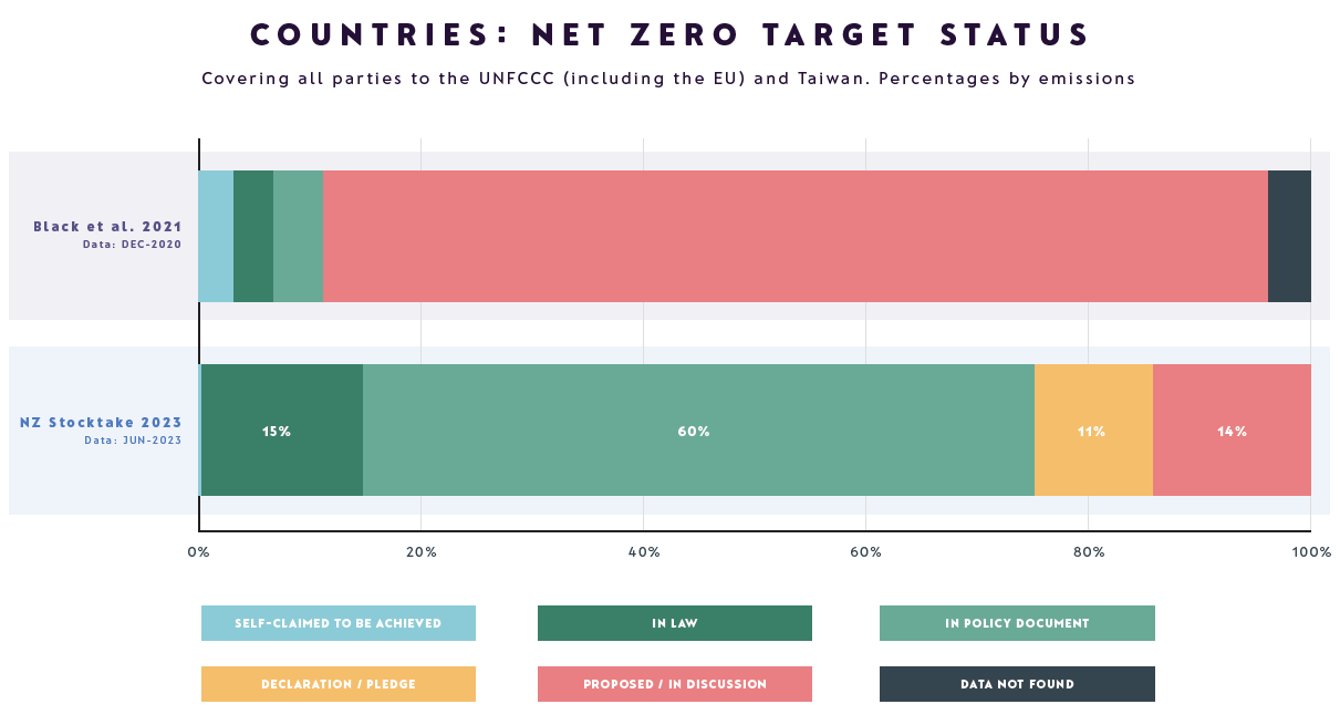 One headline finding in the report is how established net zero targets are today. By the end of 2020 only a handful of countries had embedded a target in law, or even in policy. It was all in discussion. Three years later 75% of global emissions are covered by national targets. That includes 89% of the world’s population and 92% of GDP.
