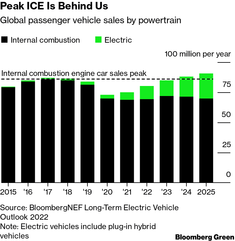 Here’s something I hadn’t really thought about in these terms, and learned about in Hannah Ritchie’s book Not the End of the World: we are witnessing peak ICE. Sales of cars with internal combustion engines peaked in 2017. That’s highlighted by Bloomberg New Energy Finance, who track such things in their annual Electric Vehicle Outlook.