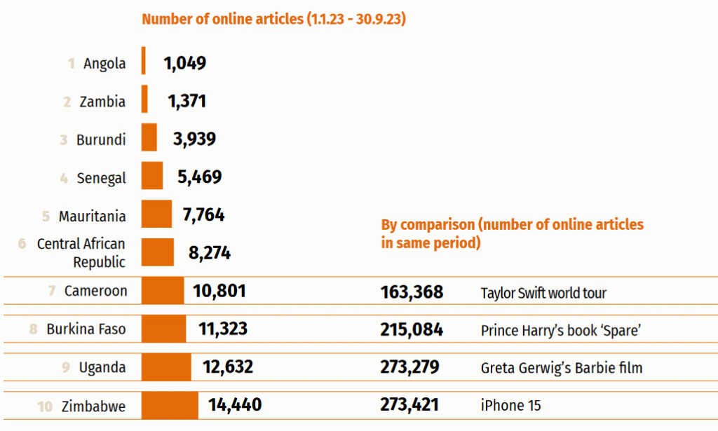 For eight years now Care International has commissioned media analysis into the least reported humanitarian crises of the year. The 2023 report is called Breaking the Silence, and for the second year in a row all of the top ten are in Africa. As the Kenyan journalist Zelipha Kirobi says, “Africa is barely visible in the international media.”