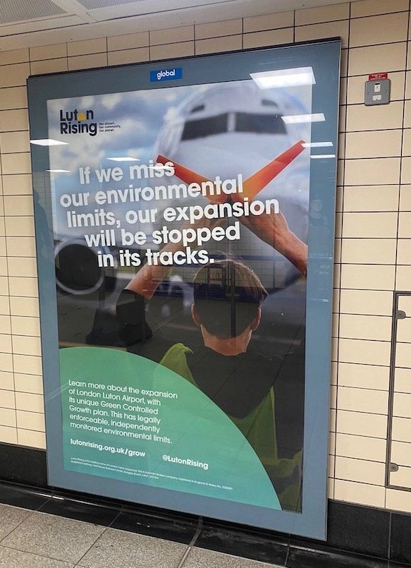 This idea of maximum greenhouse gas emissions was also used in Luton Rising’s adverts last year. “If we miss our environmental limits, our expansion will be stopped in its tracks,” the ad claimed – before the Advertising Standards Authority ordered them taken down for being misleading.