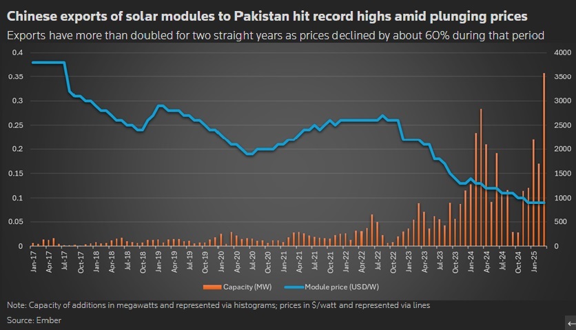 The fastest moving solar revolution at the moment is in Pakistan, where imports of solar panels have boomed as prices have fallen. The country added 17GW of new solar power in 2024 – that’s more than the entire solar capacity of the UK, installed in a single year. Nowhere is moving as fast as Pakistan when it comes to solar power.