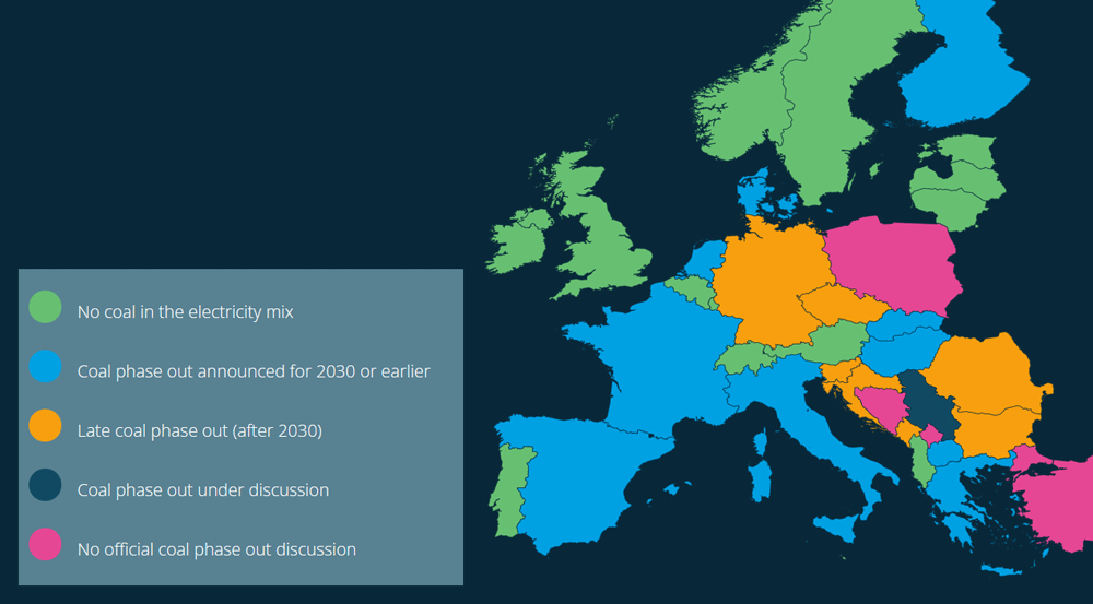 There are some laggards on this map. You’ll notice that the countries with slow or no plans to phase out coal correlates rather neatly with the list of coal producing nations in Europe. As we’ve seen repeatedly in Germany, the jobs and lobbying power of the coal industry is a powerful dragging anchor on the energy transition. It’s not insurmountable – see Hungary or Slovakia, who have supported coal regions in a planned and gradual shift.
