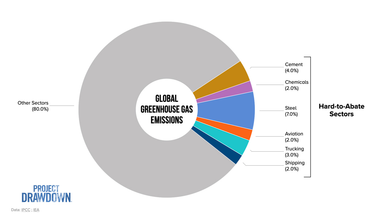 These problem sources of greenhouse gas emissions include aviation and shipping, steel and cement production. Together they account for around 20% of the total.